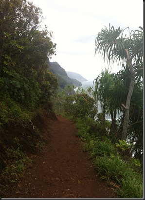 This is probably the best, or easiest, part of the trail. Hard-packed dirt, not too muddy. But there were other parts that were muddy where our shoes would sink into the dirt, and rocky to the point that it was difficult up and down….